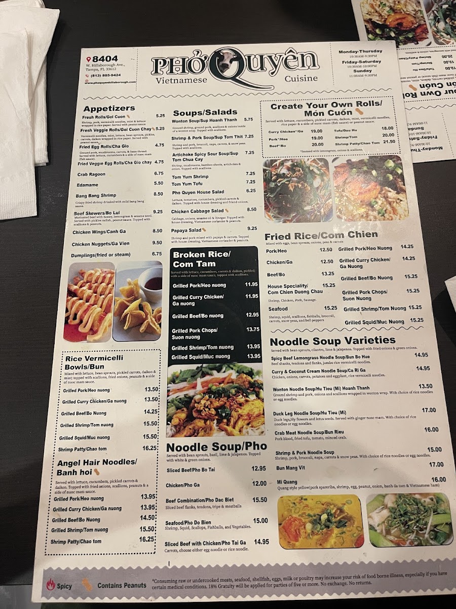 Welcome to Pho Quyen Vietnamese Cuisine, where the flavors of Vietnam come to life in a warm and inviting atmosphere. Located at 8404 W Hillsborough Ave, Tampa, FL, this delightful eatery offers an extensive menu that caters to every palate.
